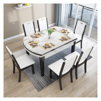 格思顿家具 岩板餐桌 简约现代大理石餐桌椅组合 小户型客厅实木餐桌可伸缩钢化玻璃白色饭桌折叠圆桌 【大理石款】单餐桌(颜色备注) 1.2m