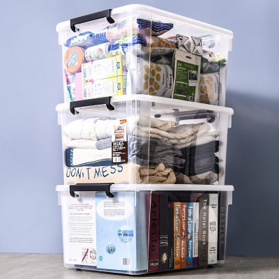 凡高(VENGO) 海纳亮彩手提收纳箱 15升3只装小号塑料百纳箱 家用衣物整理箱 储物箱 蓝色