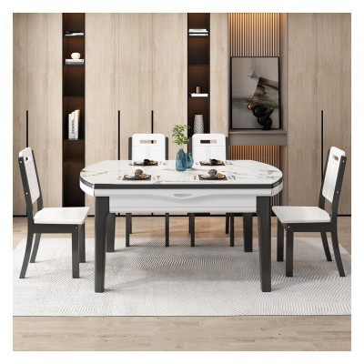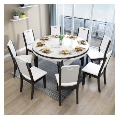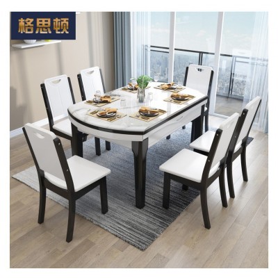 格思顿家具 岩板餐桌 简约现代大理石餐桌椅组合 小户型客厅实木餐桌可伸缩钢化玻璃白色饭桌折叠圆桌 【大理石款】单餐桌(颜色备注) 1.2m